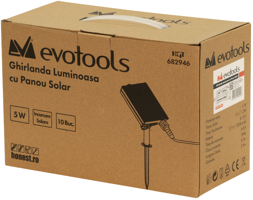 Napelemes fényfüzér 6.5m, 10 izzóval. Sokrétű dizájnnal és napenergiás működéssel, könnyű telepítéssel és teljesen környezetbarát módon plusz szépséget ad otthonodnak. Nincs további villamosenergia-költség. Könnyen telepíthető és teljesen autonóm.