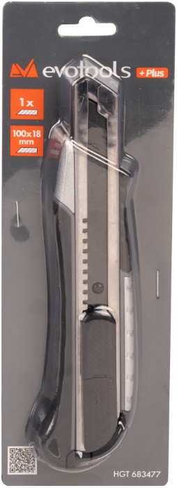 Cutter Evotools 7862 PLUS, cu corp robust din aliaj de zinc, ABS și TPR, echipat cu lamă de 18 mm din oțel durabil. Include 1 lamă, oferind tăieri precise, siguranță și confort maxim în utilizare.
