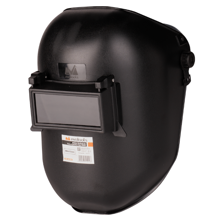 Mască de sudură proiectată pentru protecția eficientă a ochilor și feței în timpul lucrărilor de sudare. Este echipată cu un suport reglabil pe cap, prevăzut cu 3 articulații, ce oferă stabilitate și confort sporit pe durata utilizării.