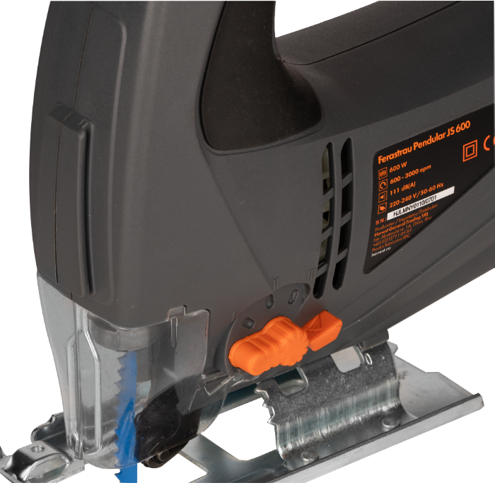 - Változtatható sebesség (6 fokozat): a löketek száma 600 és 3000 löket/perc között állítható, így tökéletesen hozzáigazítható a vágandó anyaghoz (fa, műanyag, alumínium stb.), optimális irányítást és kiváló felületminőséget biztosítva.