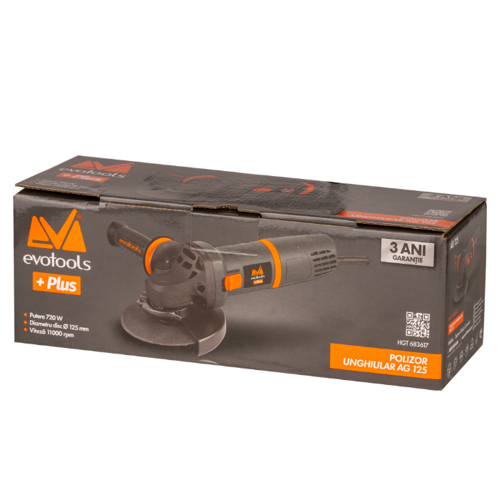 Az AG 125 EvoTools +Plus® sarokcsiszoló kompakt és erős eszköz, ideális vágáshoz, csiszoláshoz és sorjátlanításhoz otthon vagy a műhelyben.
