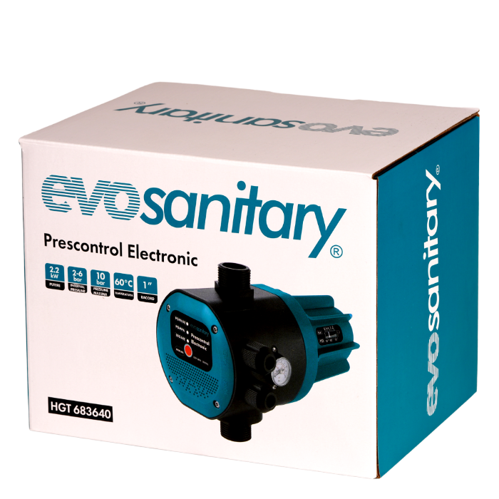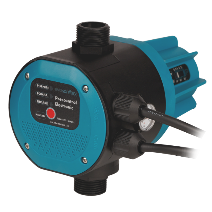 Prescontrolul electronic Evosanitary este un dispozitiv automat destinat controlului pornirii și opririi electropompelor de apă, oferind în același timp protecție împotriva funcționării în gol. Dotat cu un reductor de presiune încorporat, acest model este ideal pentru instalații rezidențiale sau comerciale, asigurând o funcționare eficientă și sigură a sistemelor de alimentare cu apă.