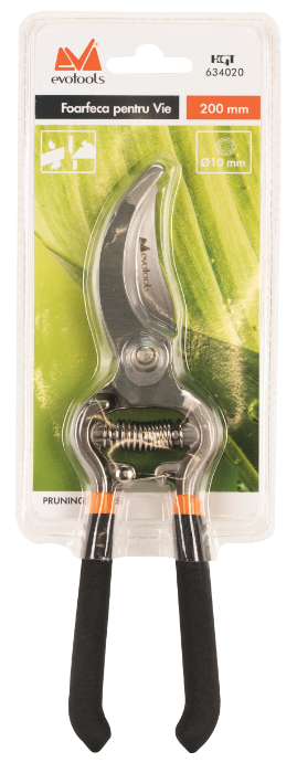 Foarfeca pentru vie EvoTools are falcile taietoare confectionate din otel carbon de inalta calitate, tratat termic, cu o duritate de 48-52 HRC, manerele fiind confectionate din acelasi material ca lacile taietoare, acoperit cu policlorura de vinil (PVC). Manerele ergonomice va permit o priza optima, reducand riscul alunecarii in timpul utilizarii, pentru a putea taia cu usurinta ramuri cu diametrul de pana la 15 mm. Acest tip de foarfeca este proiectata pentru a efectua lucrari de ingrijire a gradinii sau a butasilor de vita de vie.