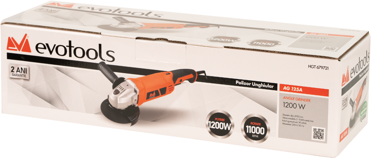 Polizorul Unghiular AG 125A EPTO are un motor de 1200W ce asigura o turatie variabila cuprinsa intre 0-11000 rpm in 6 trepte.
